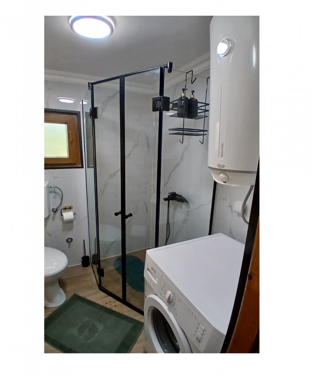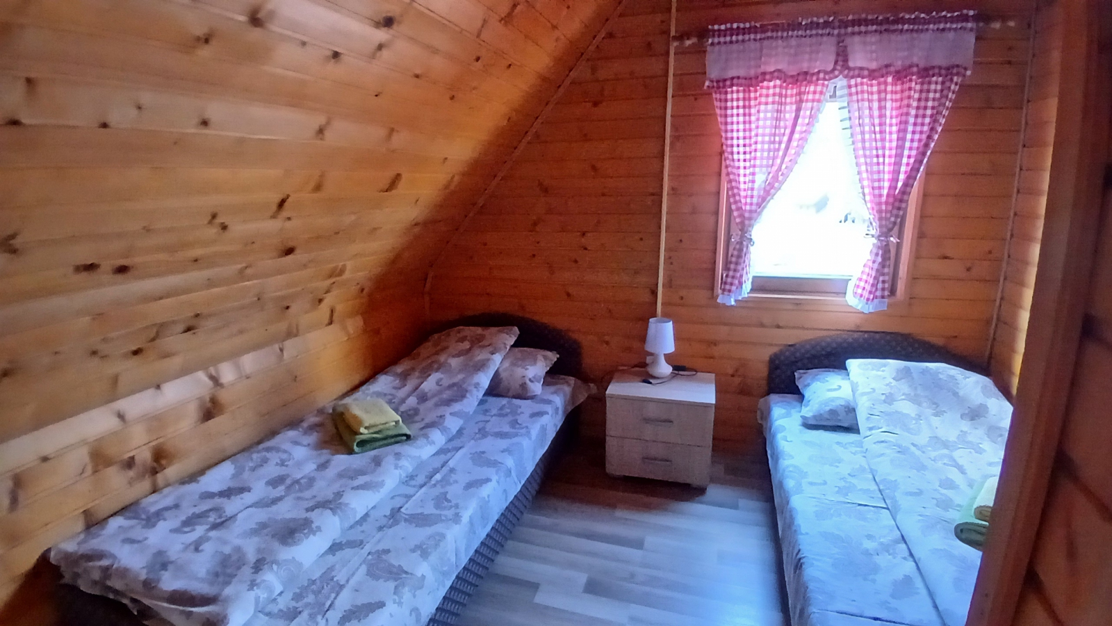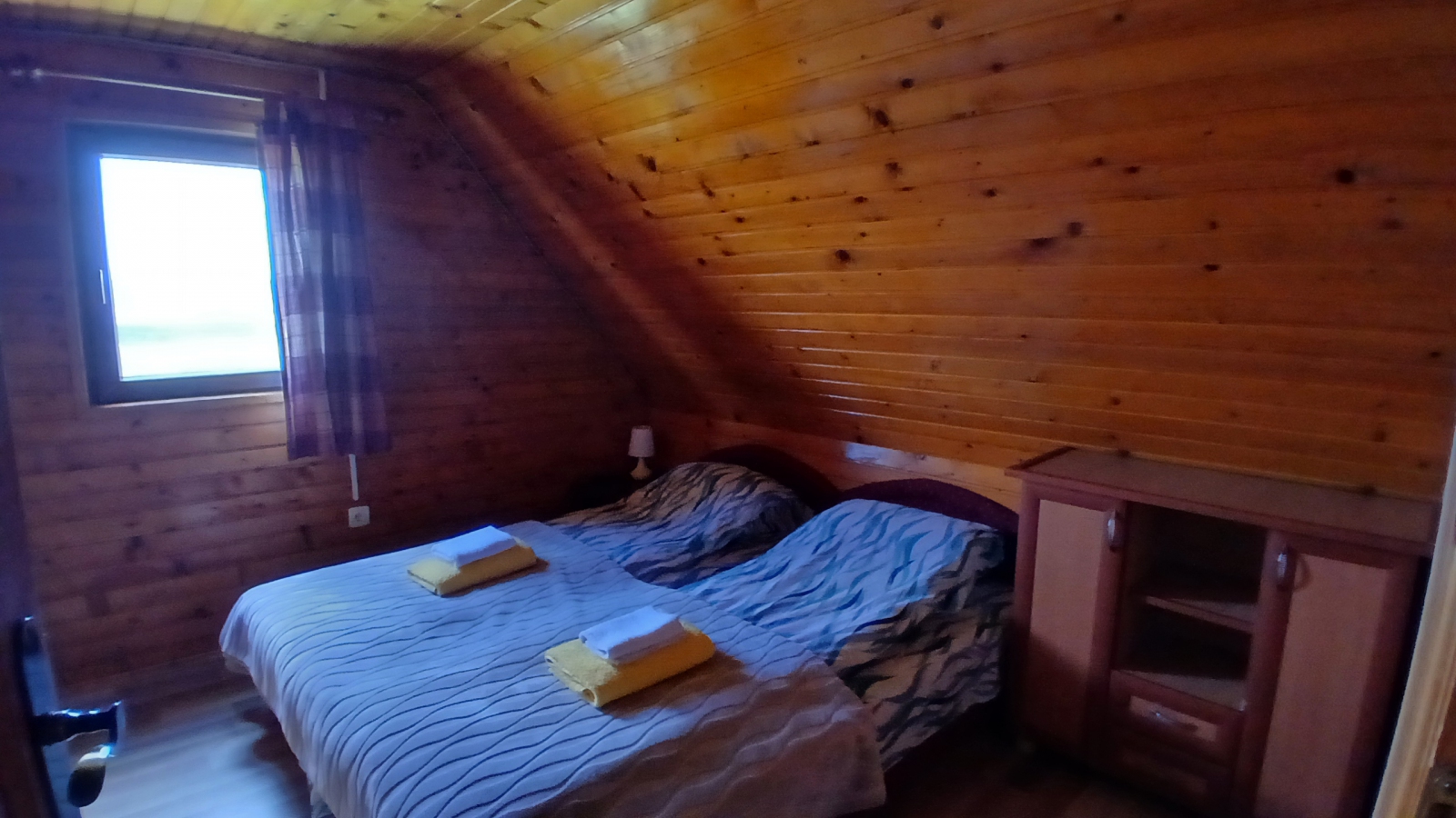 Шале имеет три спальни – две двухместные и одну трехместную (7 мест). На нижнем этаже расположены кухня, гостиная и столовая (кухня отделена от остального пространства барной стойкой). На верхний этаж ведет удобная лестница. Ванная комната с душевой кабиной, бойлером и стиральной машиной также находится на нижнем этаже. Шале оборудовано террасой с видом на Езерское плато. В интерьере дома сочетаются деревянные и каменные элементы, которые вместе с камином и традиционными балканскими предметами быта создают в шале уютную и приятную атмосферу. Кухня полностью оборудована всеми необходимыми кухонными приборами, электрической печью, холодильником, электрочайником, посудомоечной машиной и т.д. В гостиной находится телевизор со спутниковым телевидением и DVD. Во всех апартаментах и на территории Family Farm - зона покрытия WiFi. На территории Family Farm Apartments установлен стационарный барбекю, а также находится детская площадка, которыми могут пользоваться все гости нашего комплекса. Минимальный срок бронирования - 3 ночи и 4 ночи в июле и августе.